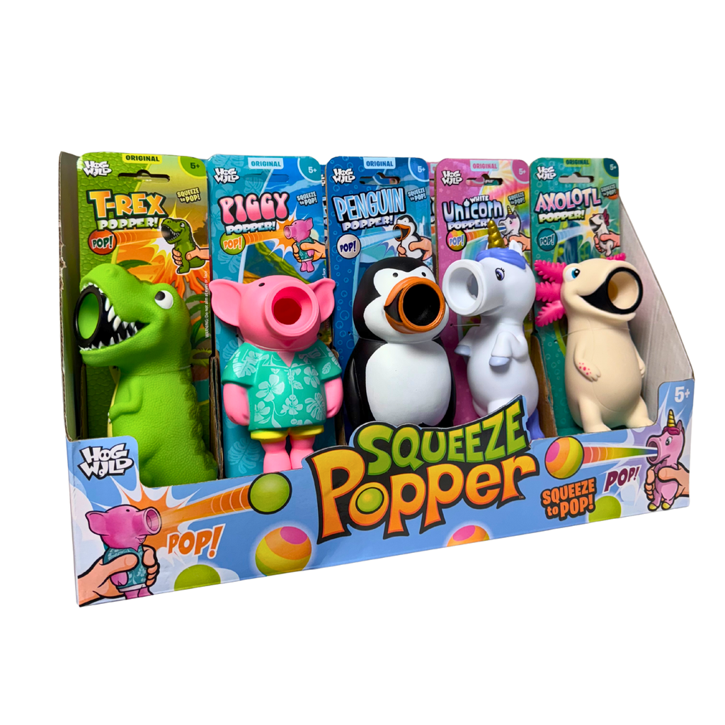 Squeeze Poppers are fun, air-powered toys that shoot soft foam balls up to 20 feet just by squeezing their squishy bellies. They are suitable for kids aged 5+ years and come with four foam balls included. With lots of great designs, they make great sensory fidget toys that encourage kids to get active and play, indoors or outdoors. Perfect as party favours, stocking fillers, desk stress toys, or simply for endless family fun, Squeeze Poppers are a proven favourite in the UK and around the world.
